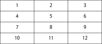 | 10 | 11 | 12 |