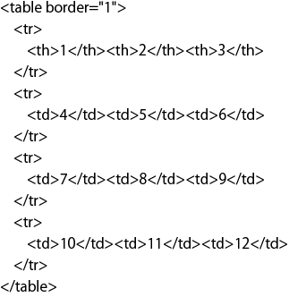 tableはブロック要素で、全体をtableで囲み、行をtr、見出しをth、内容をtdで記述します。